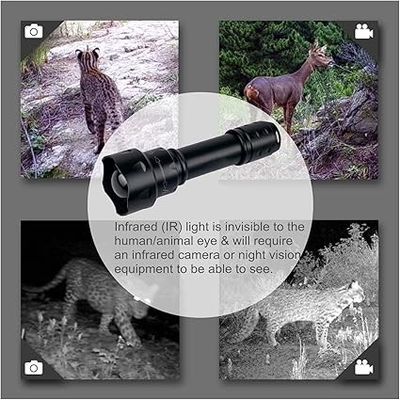 Esta linterna táctica es perfecta para su uso nocturno gracias a su fuente de luz infrarroja de 850 nm. Es resistente al agua y viene con un cargador.Es ideal para la caza y otras actividades al aire libre que requieren IR 940nm.